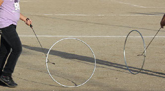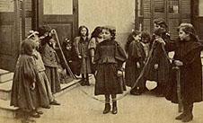 Las chicas jugaban a la COMBA, la GOMA, la RAYUELA (lo llamábamos el avión)... Otros juegos de chicos eran la PEONZA, el ARO, las CANICAS, ALUCHES...